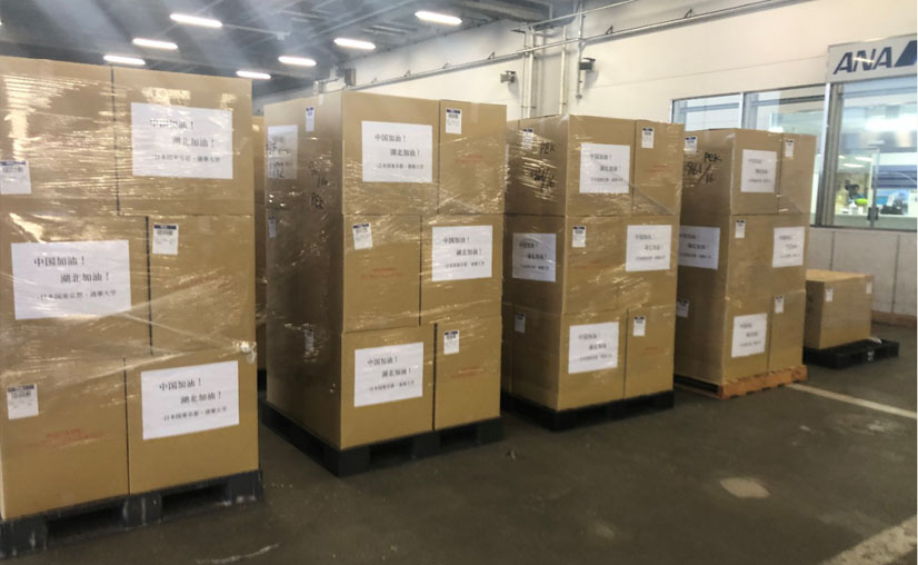 2020年2月15日—18日,中日创新中心协助日本国东京都政府以及清华大学捐赠10000套医用个人防护用具,共计200箱,在全日空航空公司片野坂真哉先生和三宅英夫先生的支持下,无偿运输陆续运抵北京,通过清华大学教育基金会支援国内物资紧缺的医院。